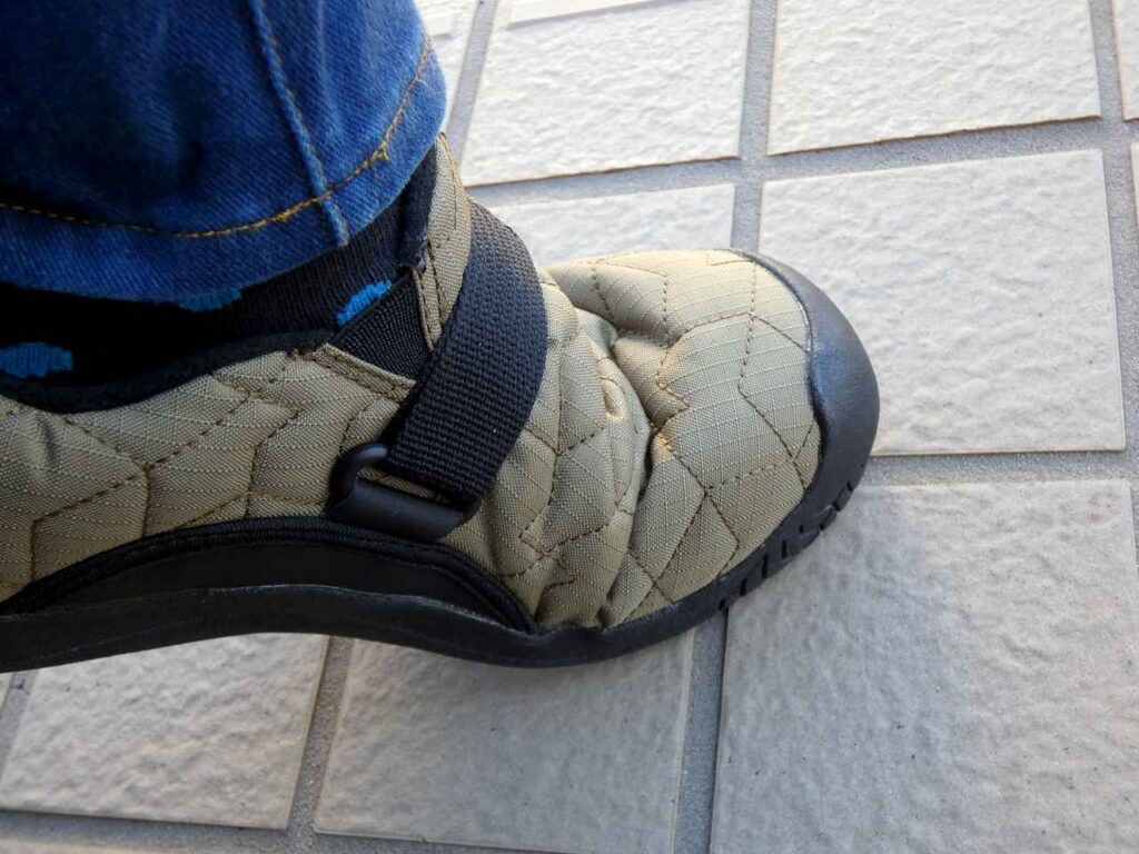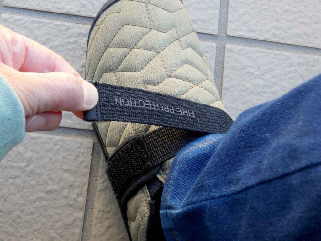 内側にフリースを使っているので、寒い日でも足元を温めてくれる点が魅力。また、ベルトを調節するとフィット感を調整できます。
