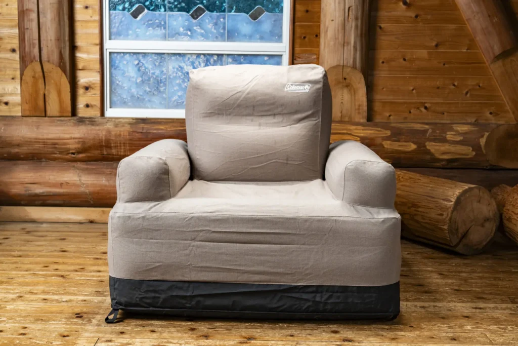 コールマンのエアカウチは、屋外だけでなく室内でも使用できます。PVCとポリエステル素材を組み合わせた構造で、床を傷つけにくく安定感があります。