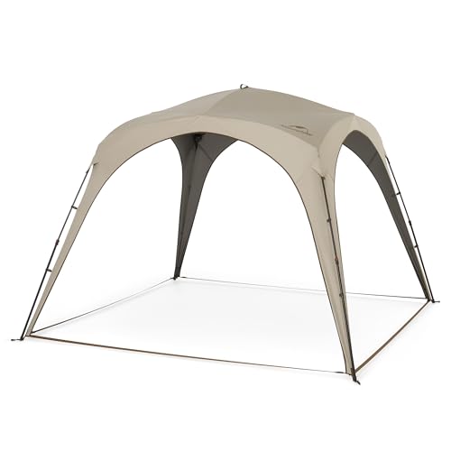 さらにUVカット加工が施されており、強い日差しの下でも快適に過ごせます。頑丈なスチールフレームで耐久性も高く、長く愛用できる一張りです。