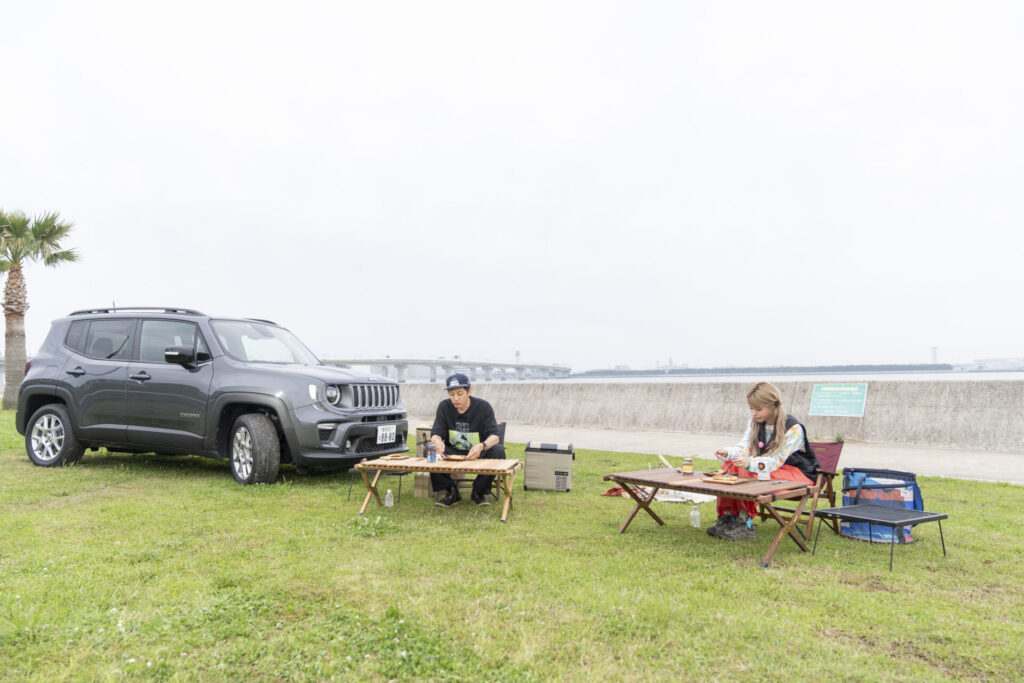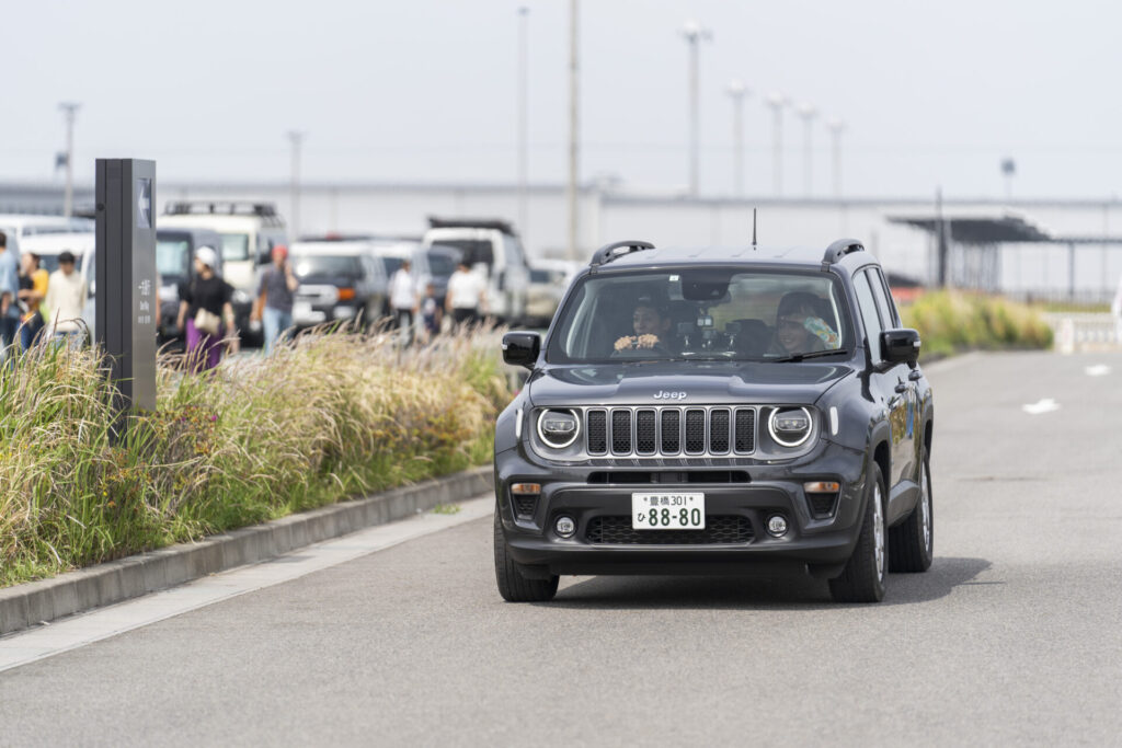 会場はAichi Sky Expo(愛知県国際展示場)。今回の旅の足は JeepのRenegade(レネゲード)。に乗って到着しました。街でもアウトドアでも映えるSUVに乗って到着し、イベント前からすっかりテンションが上がります。