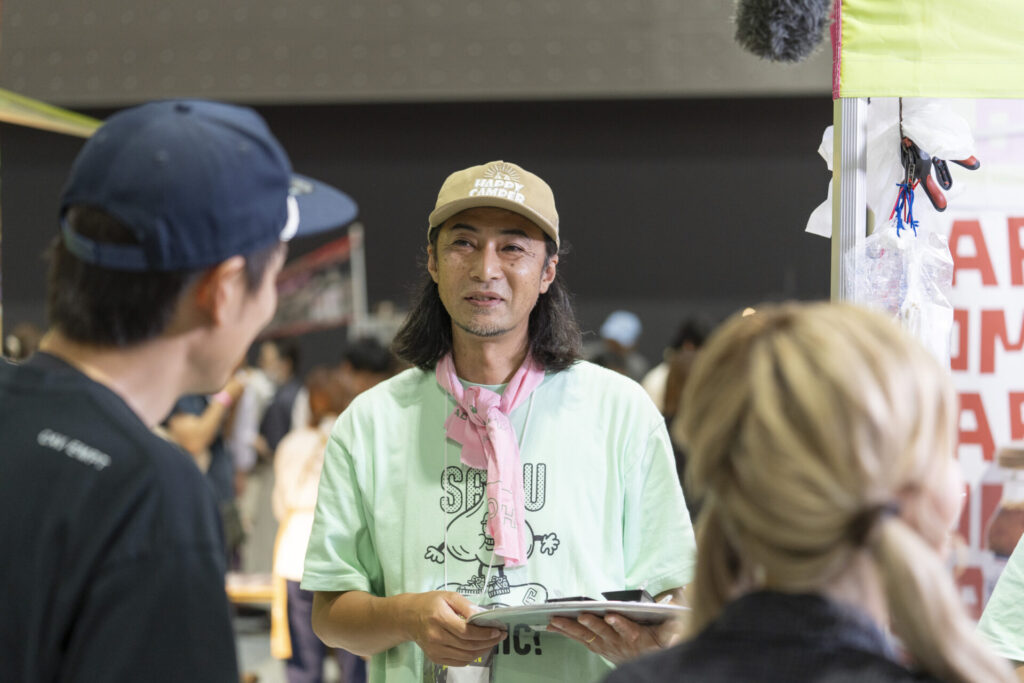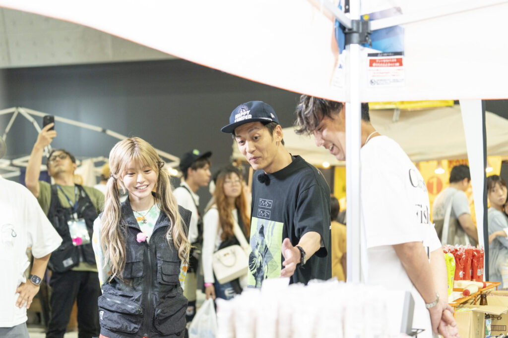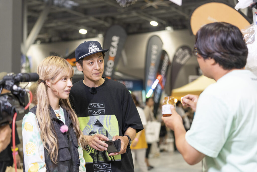「G飯の素」ブースにいたのは、焚き火マイスターの猪野さん!実は、アンジェリカさんとはハピキャンチャンネルで共演しているんです。ギャルメイクをした仲として再会を喜びました。
