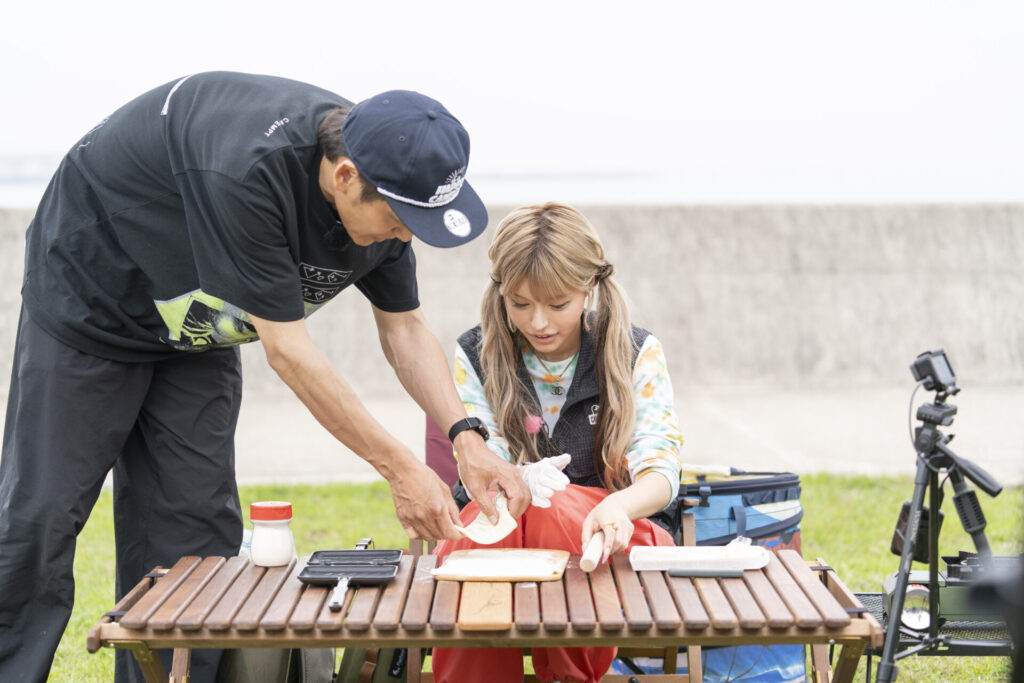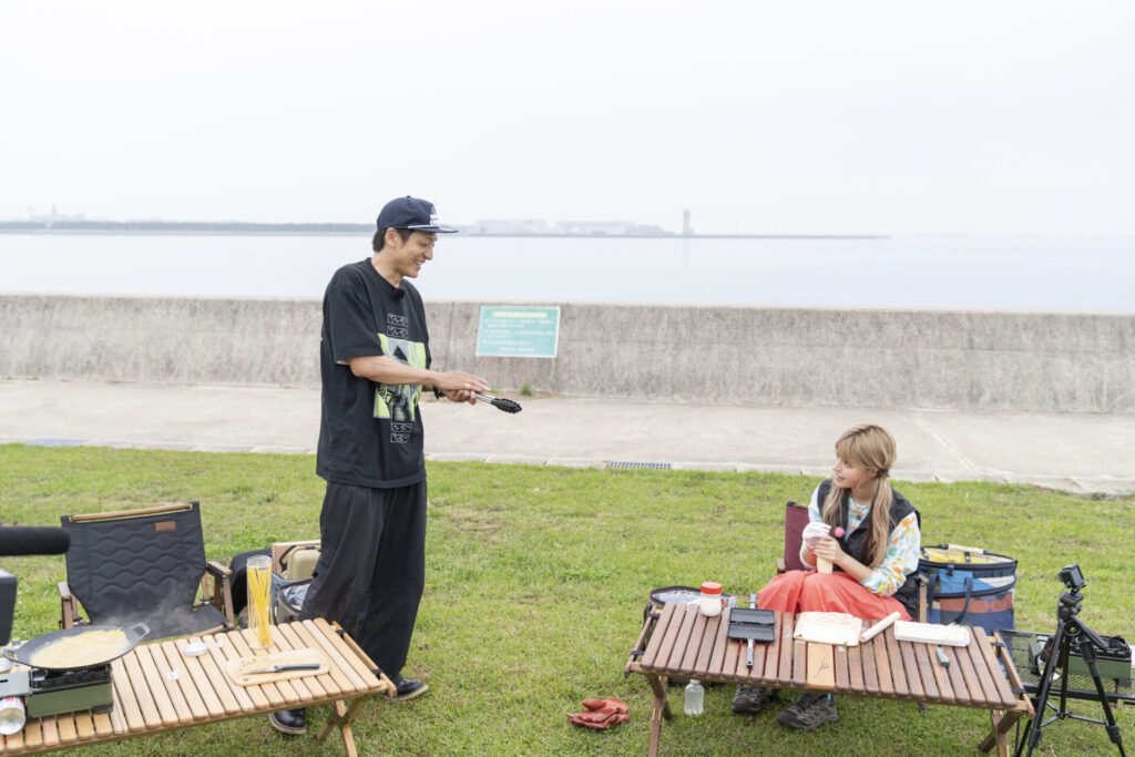 設営が終わり、続いてはキャンプ飯作りです!料理は3年ぶりだというアンジェリカさんに、村田さんが簡単に作れるキャンプ飯を教えてくれます。
