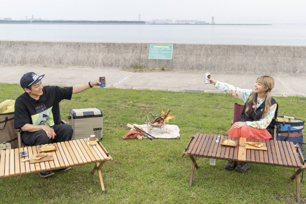 今回のキャンプの舞台は、海を一望できる絶景の「りんくうビーチキャンプ場」。
