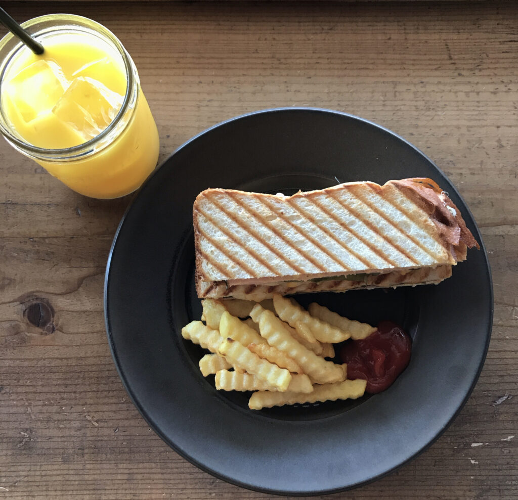- パンと具材をセットし、ホットサンドメーカーでしっかり挟む