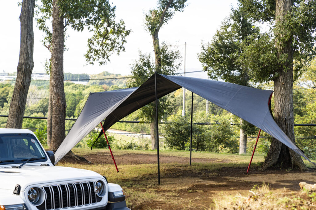 ※撮影に使用したタープはサンプル品となります。そのため、実際の製品とは一部仕様が異なります。