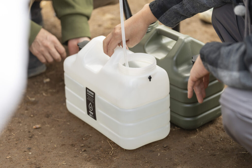 FoldFlex TableのようなIGT規格のテーブルに設置可能なキャンプ用のシンクで、水道から伸びる給水用とシンクから伸びる排水用のホースをタンクに繋げば、キャンプとは思えない立派な水場が完成です。