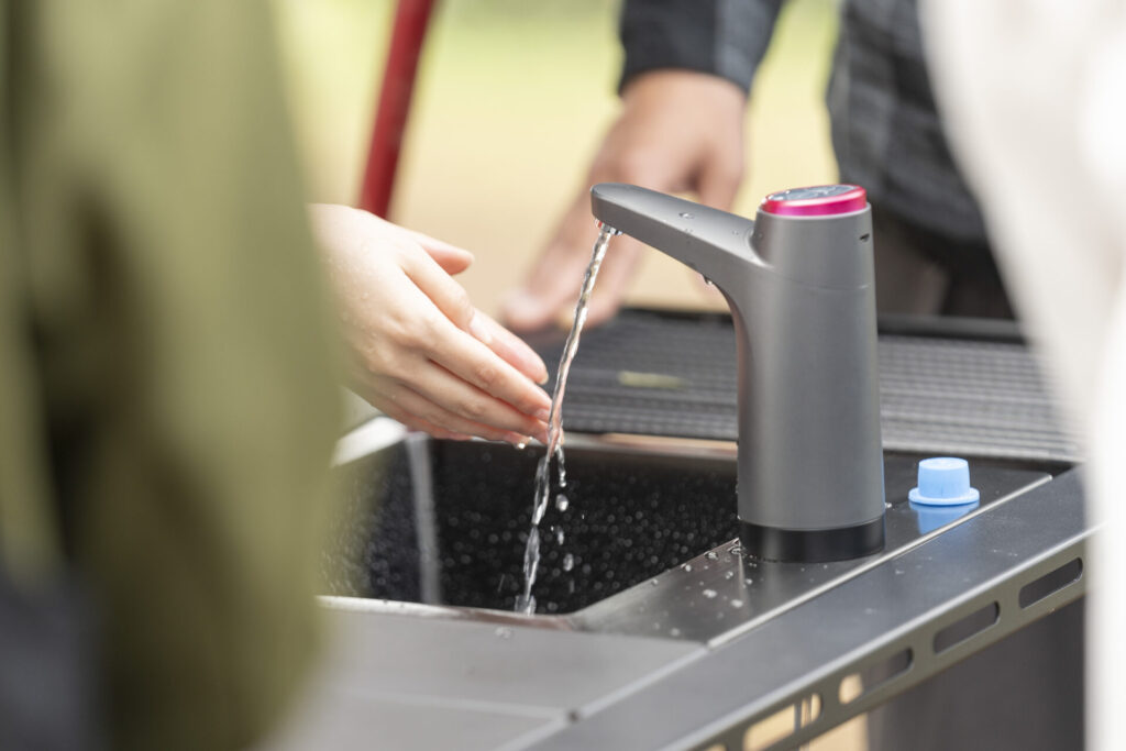 ポンプはUSB充電の電動でボタンひとつで水が流れます。キャンプのキッチンにとことんこだわりたい方にはぜひチャレンジしてみてほしいアイテムです。