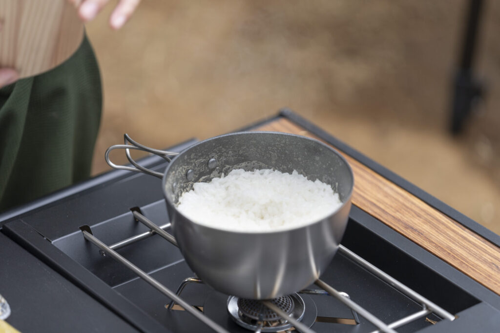こだわりのキャンプギアが米一粒一粒を美味しく仕上げる