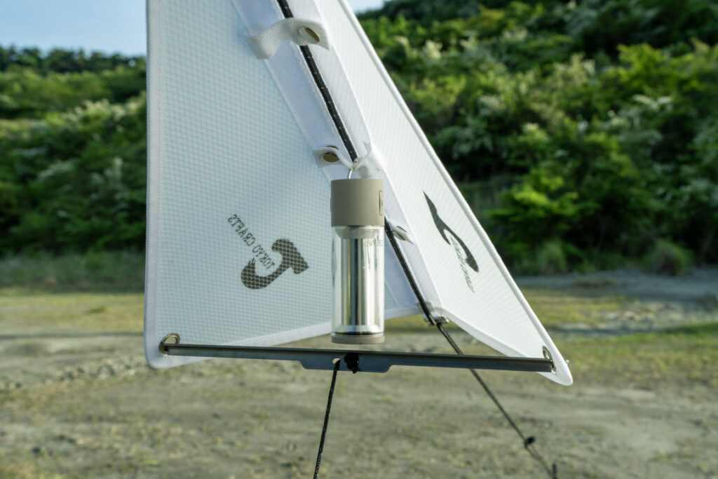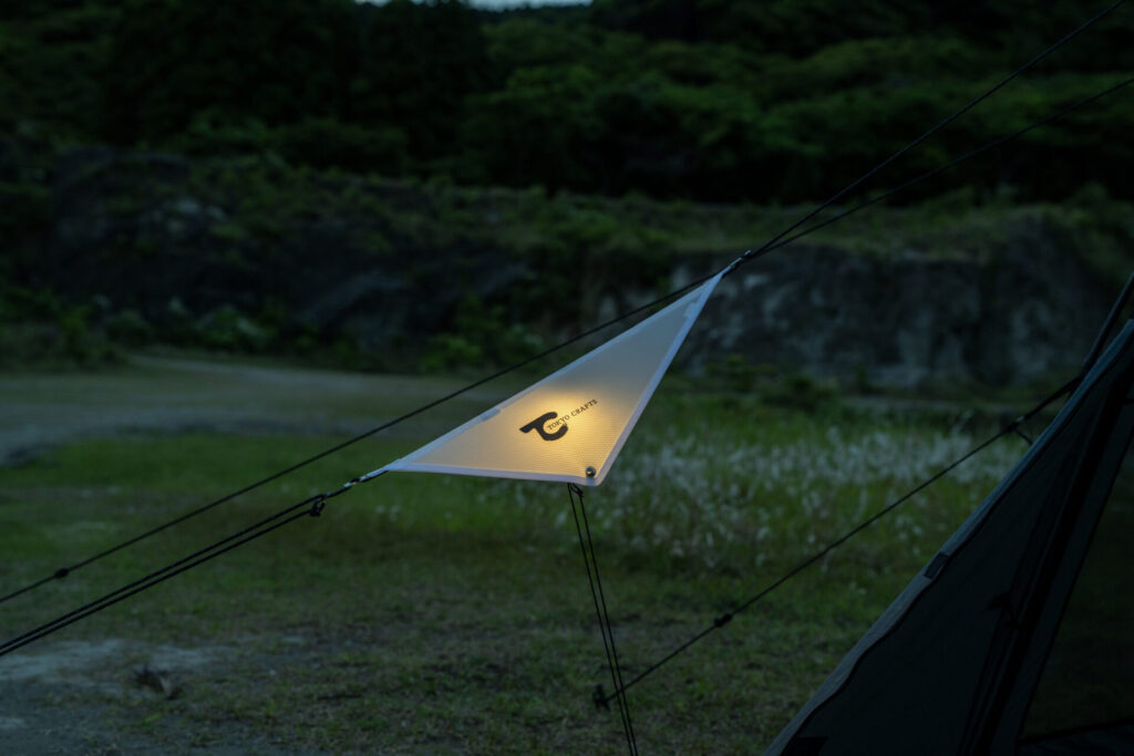 キャンパーにとって「あるある」の悩みである、夜間に見えにくくなるガイロープへのつまずきを防ぐ新ギア『ルミセイル』が登場しました。