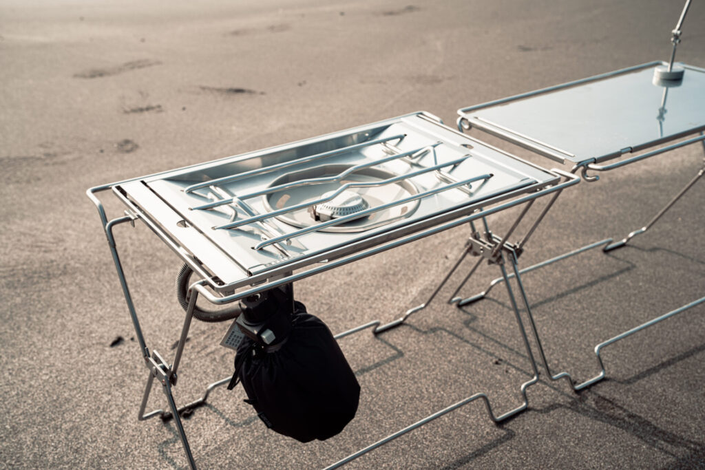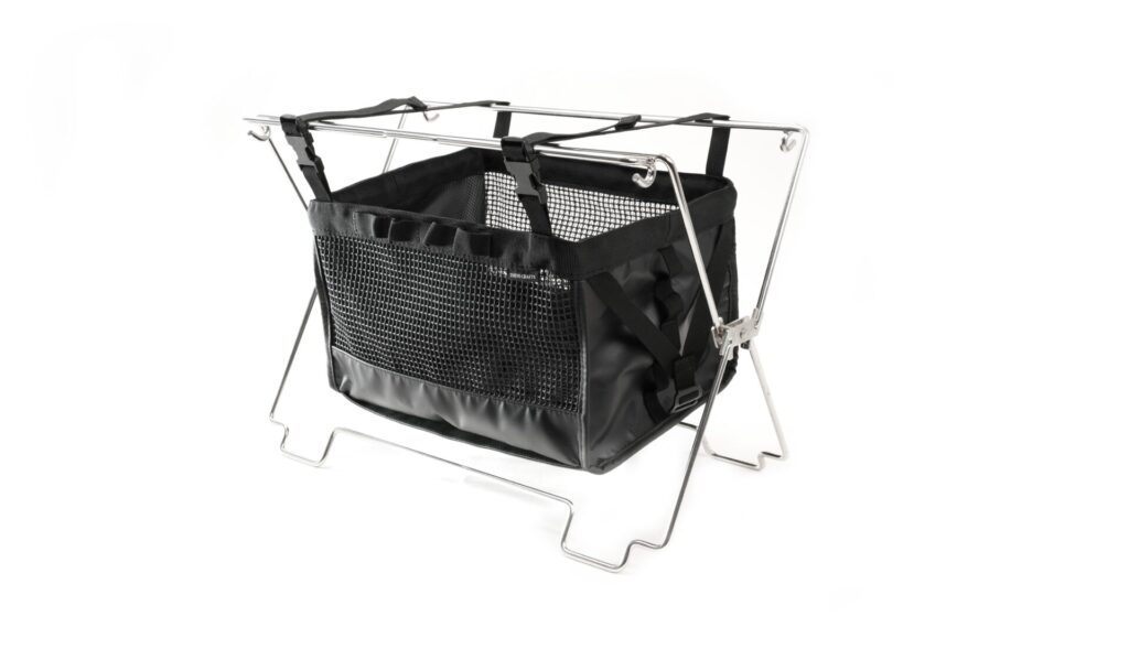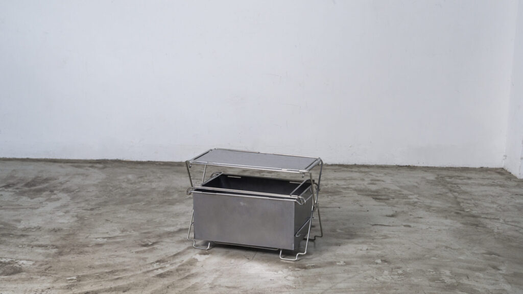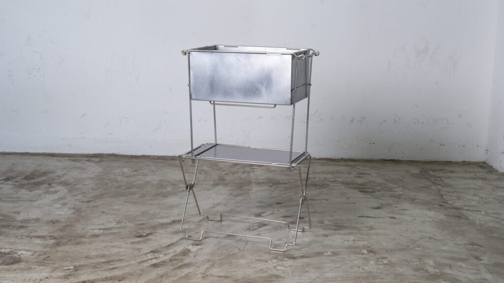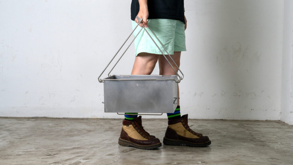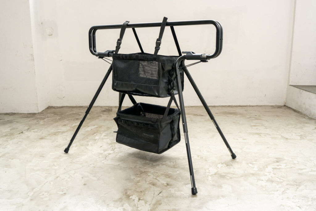 続いては『コードユニット メタルコンテナ』です。単体では、地面から高さを出せる手軽なコンテナとして使用できます。脚部は畳むとハンドルになり、持ち運びに便利。また、名前の通り、人気のコードユニットと組み合わせて使うことができます。