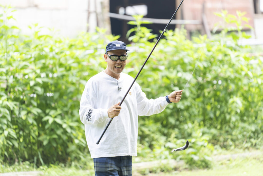 得意げな表情でナダルさんを煽ります。その言葉に触発されたナダルさんも、見事に1匹ゲット!福留さんも釣れて、全員が晩ご飯の魚を釣り上げることができました。