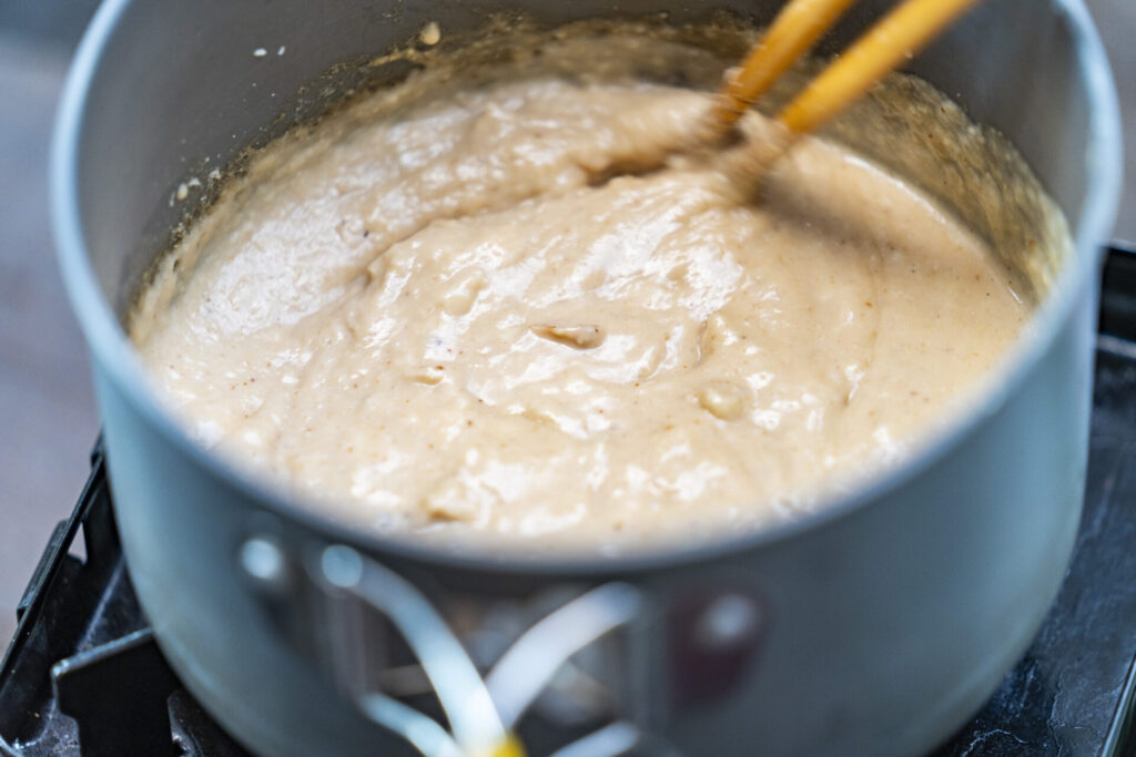 【3】なめらかになったら、コーンスターチを加えてとろみを調整する