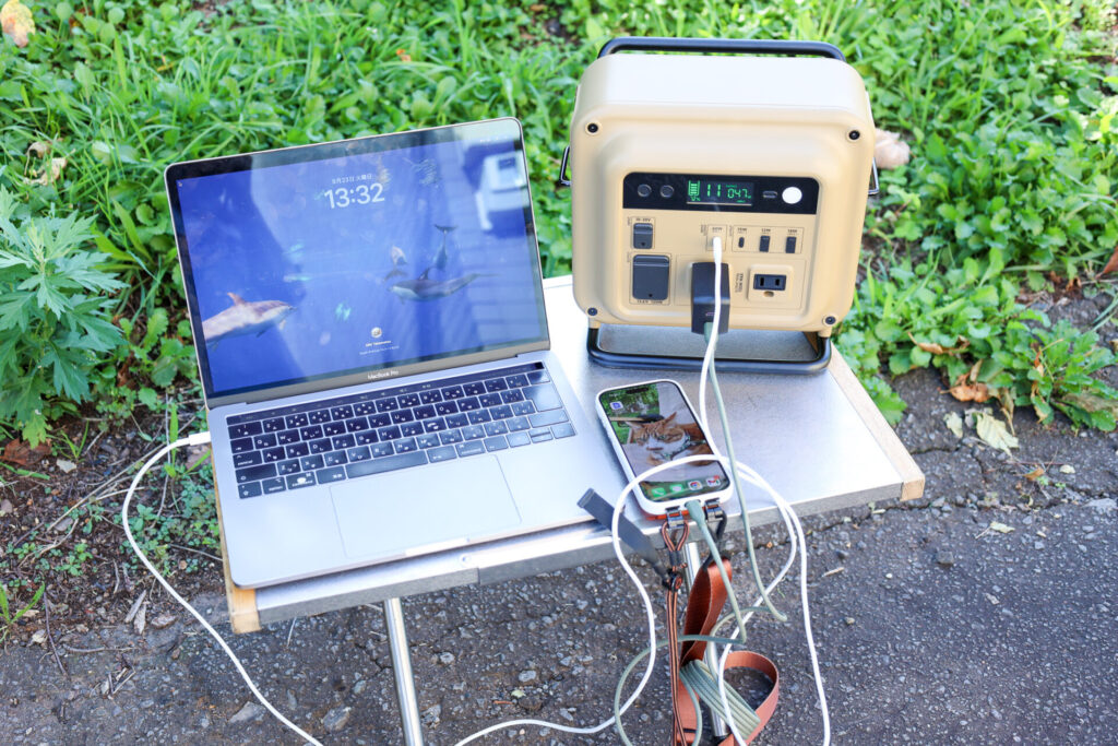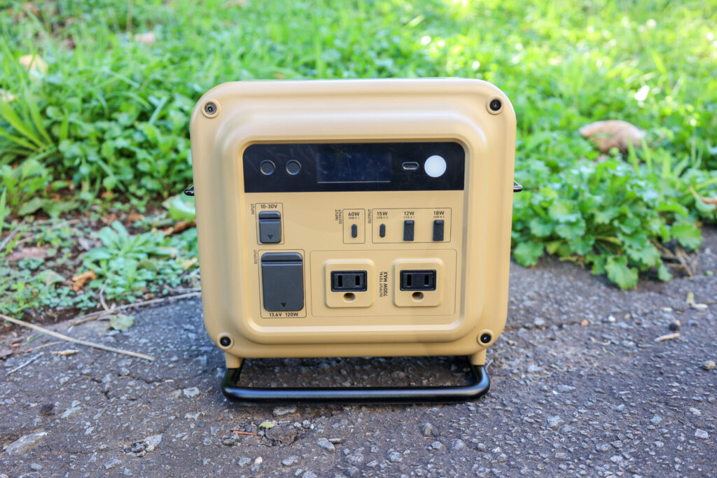 AC出力コンセントは2ポート合計700W(瞬間最大1300W)に対応しており、アウトドアでの料理の幅が広がるのはもちろん、災害時の生活でも非常に心強い存在です。