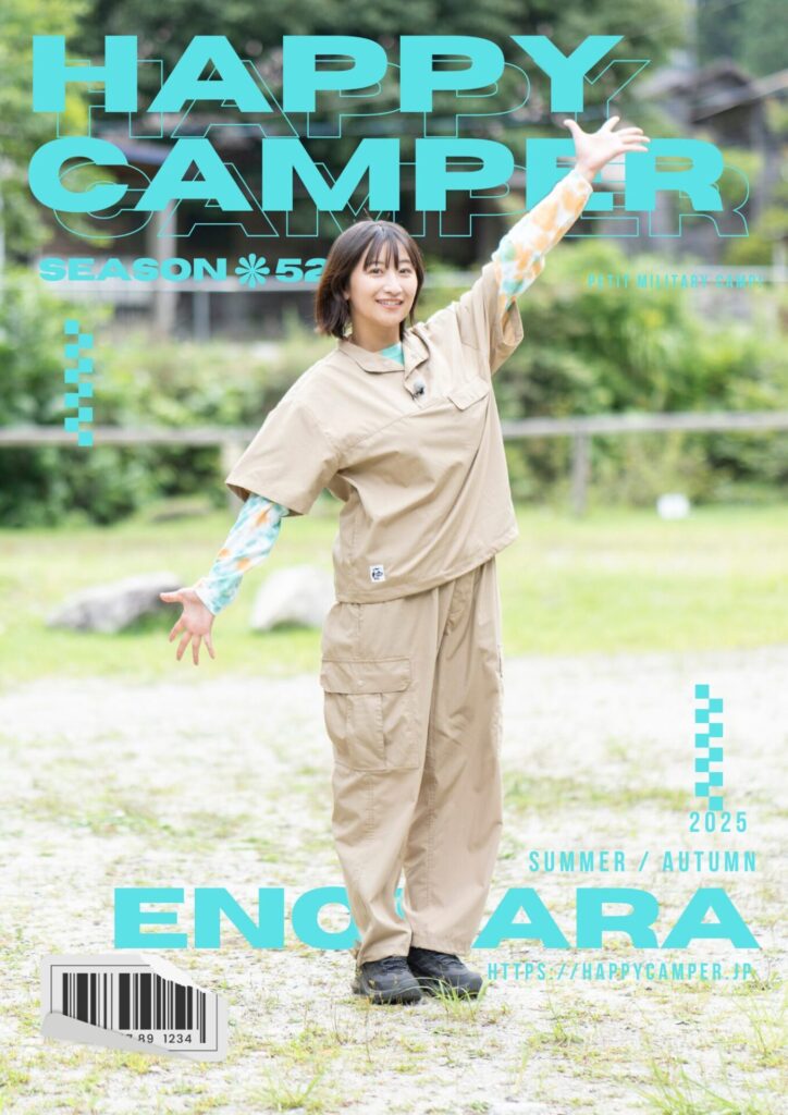 今回のハピキャンのテーマは、「なんちゃってプチミリタリーキャンプ」。射的ゲームや火起こし、飯盒を使った炊飯など、童心をくすぐるアクティビティに全力で挑戦した一同。そんなロケを彩ったのは、動きやすさと機能性を重視しながらも、ミリタリーテイストを軽やかに取り入れたキャンプコーデ。今回は、出演者が実際に番組で着用した衣装の紹介と、それぞれのスタイルをご紹介します。