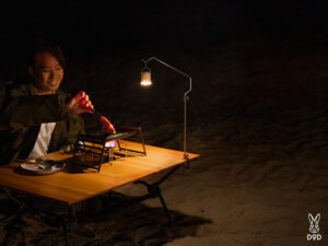 食事をする際はテーブルの真上を明るく照らす、読書や作業するときに手元を照らす、就寝前や焚き火を眺めながらのリラックスタイムには光を弱めてゆったりできる空間を演出するなど、シーンに合わせて多用途に使えるのが魅力です。