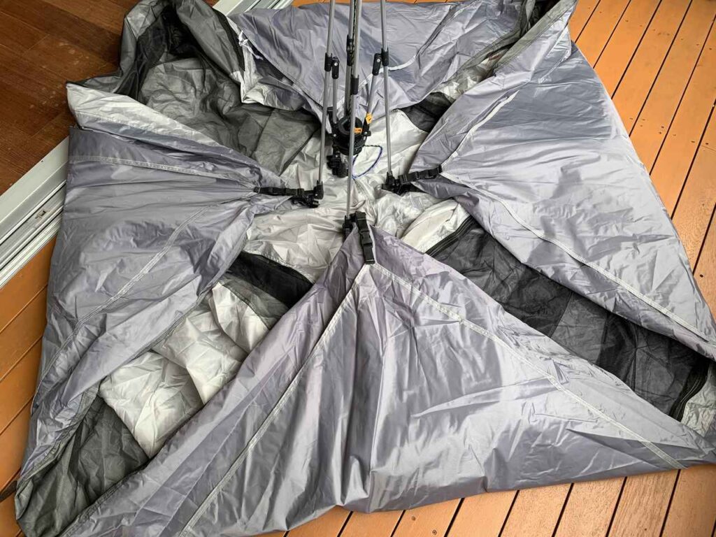 ワンタッチテントは比較的撤収が簡単な種類ですが、脚を縮めてフレームを折りたたむ工程に難しさを感じやすいです。