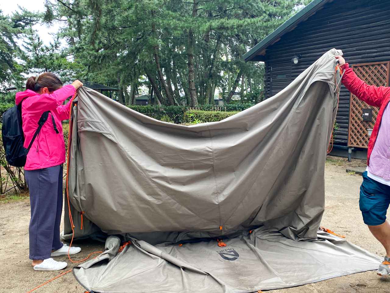 可能であれば、一度テントをひっくり返して、湿気がこもりやすい底面もしっかり風に当てるのがベスト。