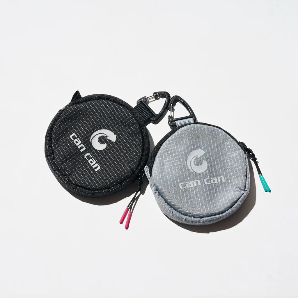 最後はキーホルダー感覚でいろんなところに取り付けて持ち運べるマルチケースです。ユニークな円形デザインに、仕切り・ポケット・クッション性などの機能を詰め込み、カードや小銭、鍵、イヤホン、ケーブル類などをしっかり収納します。内側はクッション素材で、コインがぶつかる音なども気になりません。背面にもストレッチ素材のポケットを備えています。