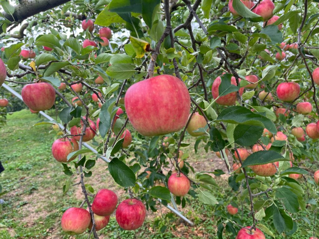 キャンプ場にほど近い「仲野りんご園」さんでは、「ふじ」や「紅玉」などのほか、幻のリンゴと呼ばれる「こうとく」など豊富な品種を栽培。