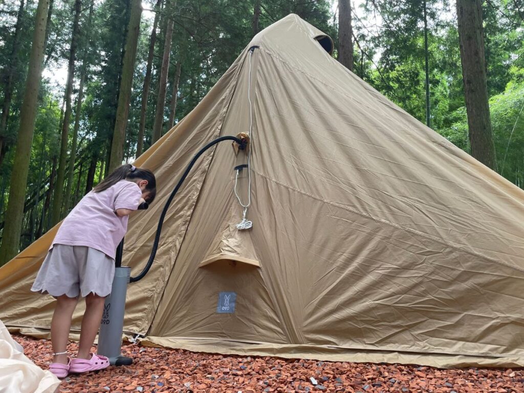 そこでおすすめなのが、空気を注入して立ち上げるエアフレーム式テント。特におすすめがDODのエアボーンです。