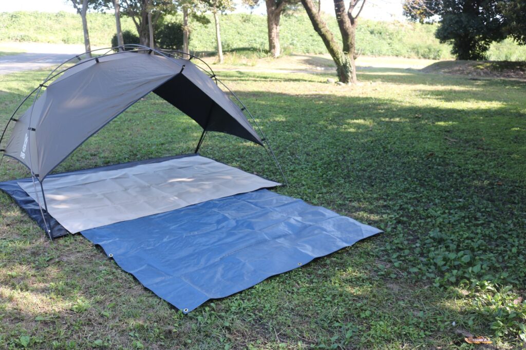 レジャーシート代わりにしたり、荷物置き場にしたり、突然の雨から守るカバーにしたりと、とにかく万能アイテムでした。