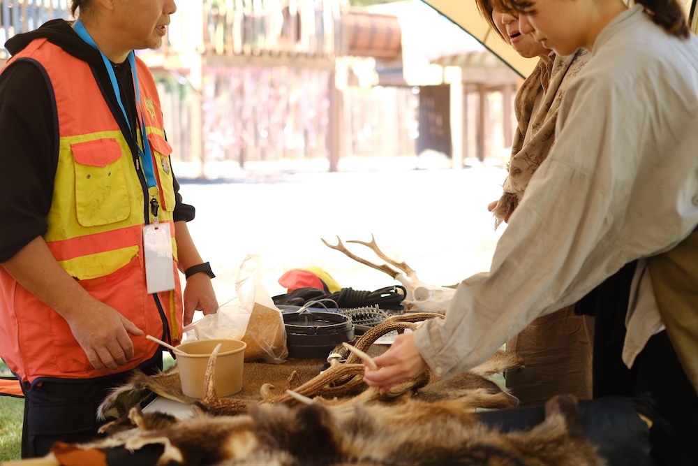 また、会場中央のテントでは、鹿革を使ったオリジナルアイテムづくりや、山梨の森の植物から抽出した精油を使ったオリジナルアロマづくりなどのワークショップが行われます。これは、自然がもたらす素材に触れることで、その生態や課題にも目を向けるきっかけとなることを目指しています。