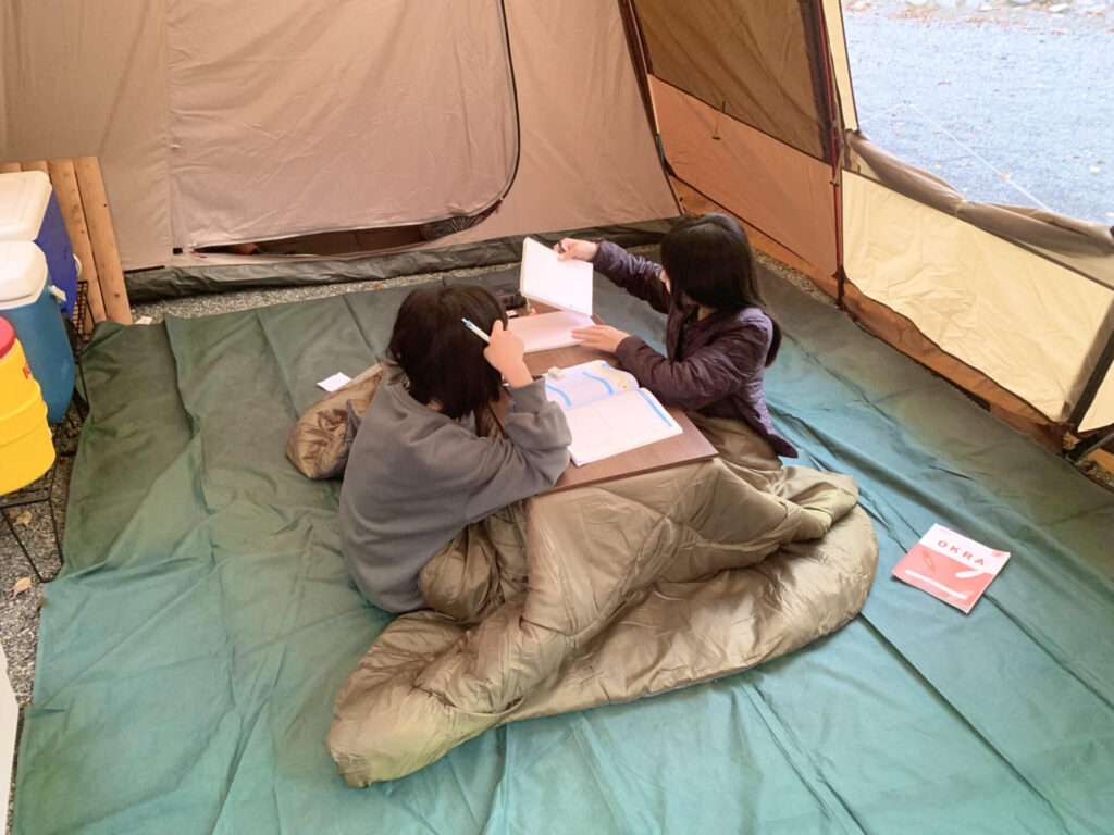 画像は、キャンプで勉強している娘達(笑)。2人で勉強するにもちょうどよいサイズ感だったようです。