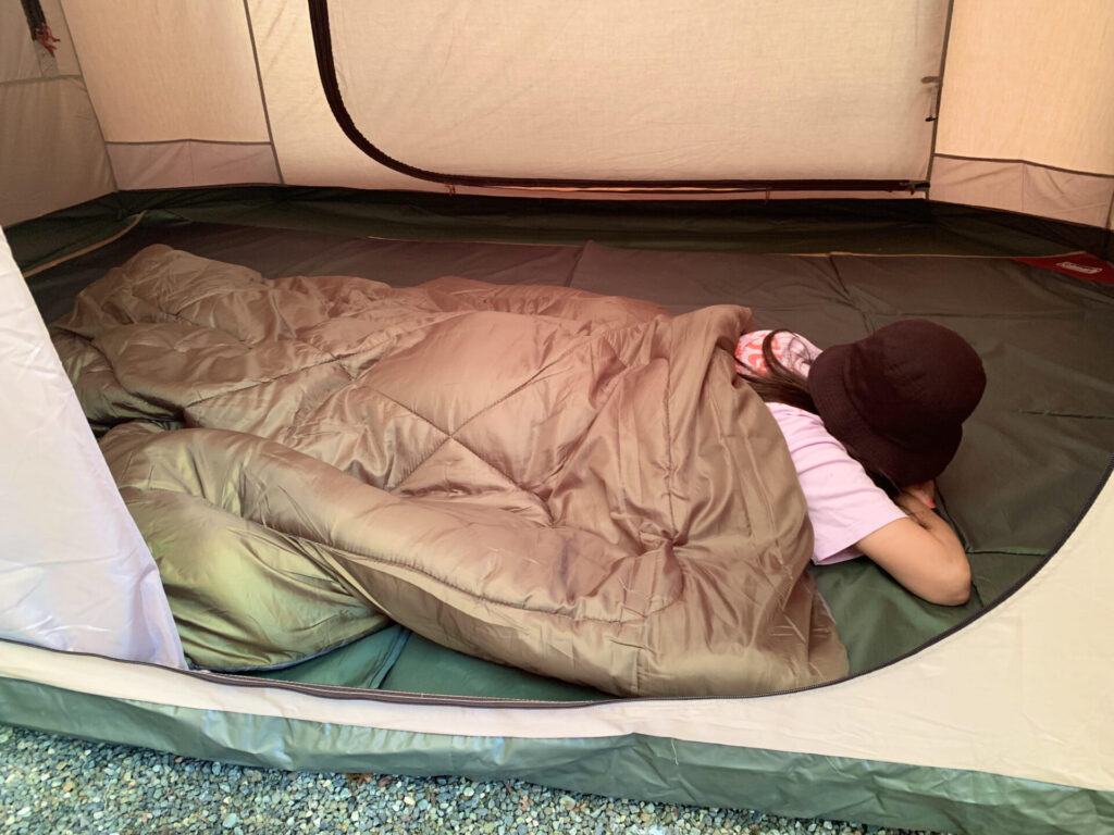 保温性抜群の掛け布団は、大人1人のシュラフとしてもぴったりサイズ!