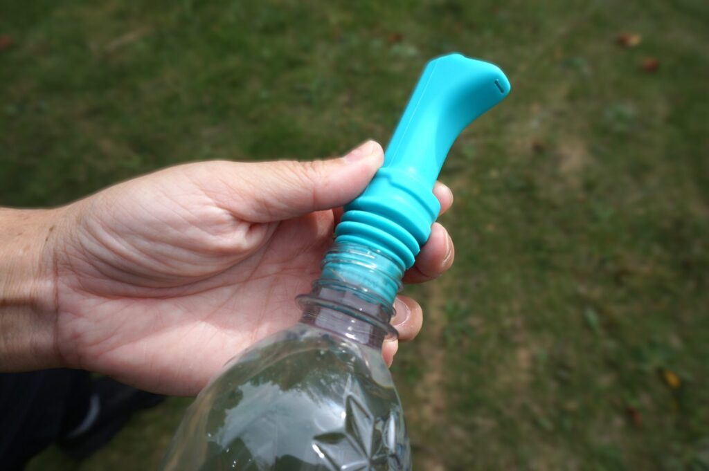 - 柔らかめのペットボトル:へこませやすく、飲み口近くまで押し込むことができるため、一番最後まで水を使い切ることができました。