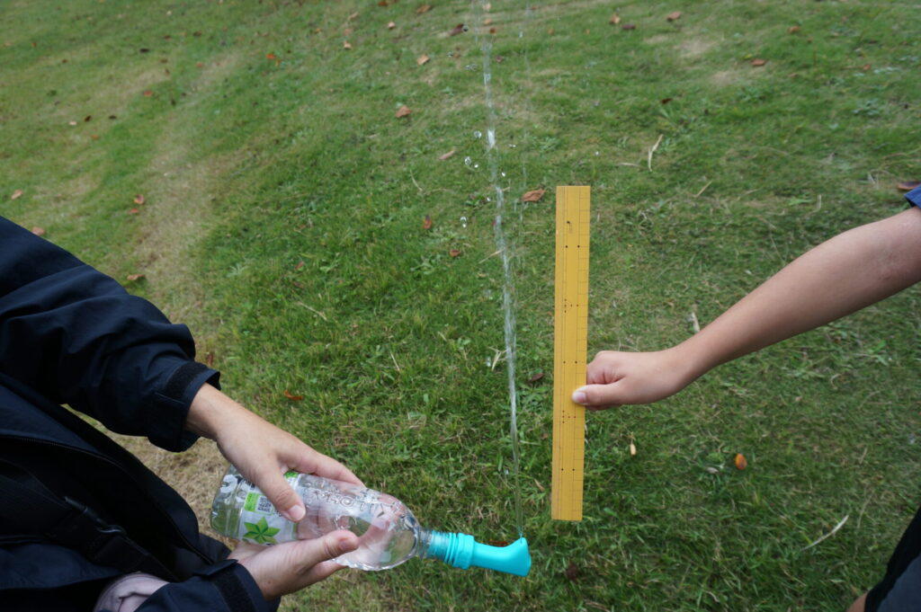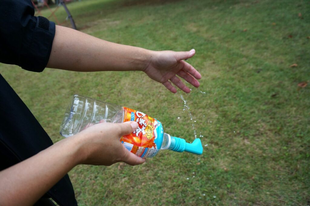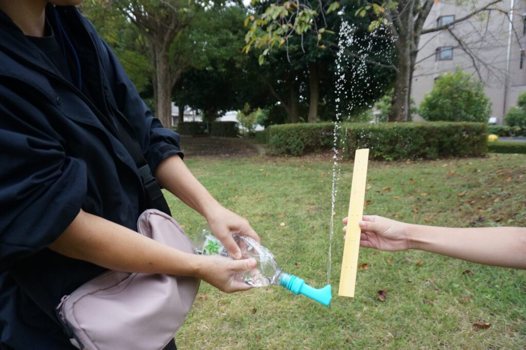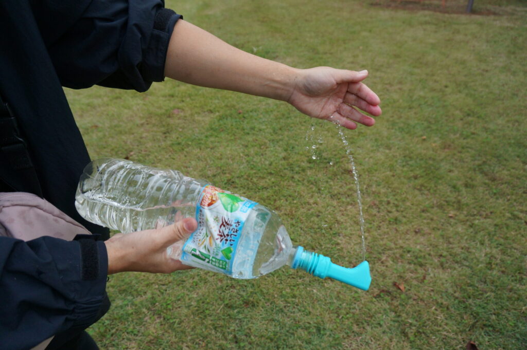 ペットボトルを押すと、チョロチョロと水が出るのではないかと想像していたのですが、いずれも予想をはるかに超える水圧でした。