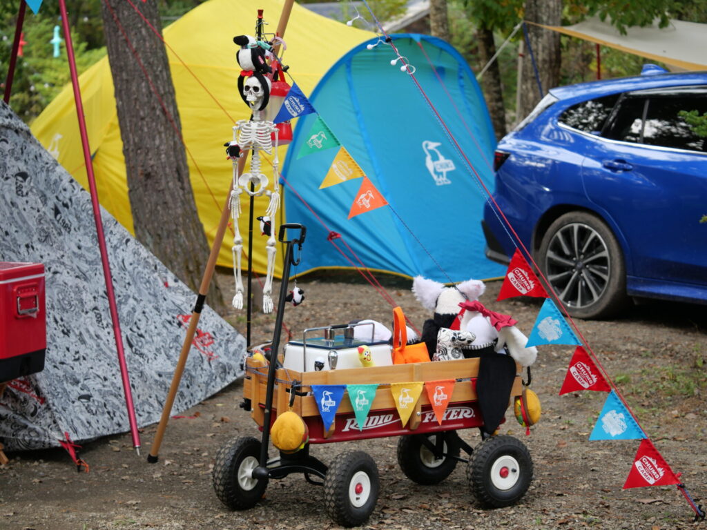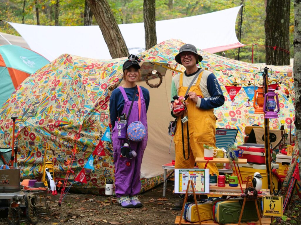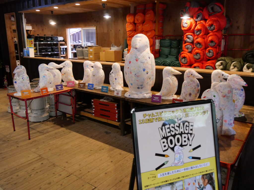 大型の「ブービーキャビンテント」を中心に、ブービーバードがあちこちに散りばめられたキュートな空間。通りすがりの参加者が「ちょっと見せてもらってもいいですか?」と声をかけるほどの完成度です。