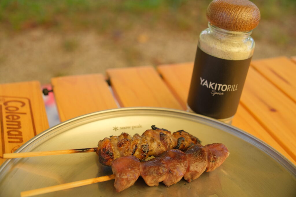 ガーリックの風味とこしょうのおいしさが焼き鳥とマッチして、キャンプ場で食べても満足感のあるしっかり目の味付け。