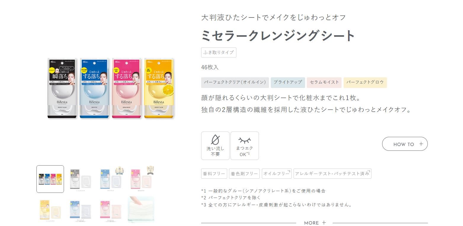 - 製品名:ビフェスタ『ミセラークレンジングシート セラムモイスト』