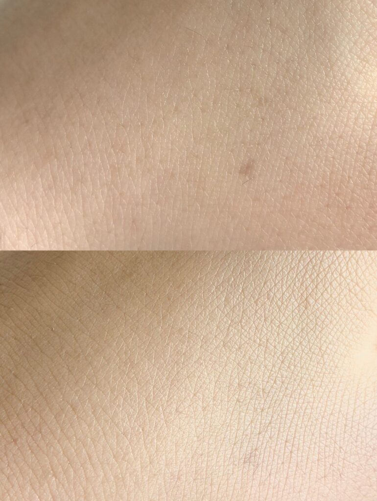 一方で、濃いめのシミや、色味がしっかりしたホクロ、目立つニキビ跡などをカバーするのは難しいな……というのが正直な印象です。そのあたりをしっかり補正したい場合には、別途コンシーラーを使用する必要があります。