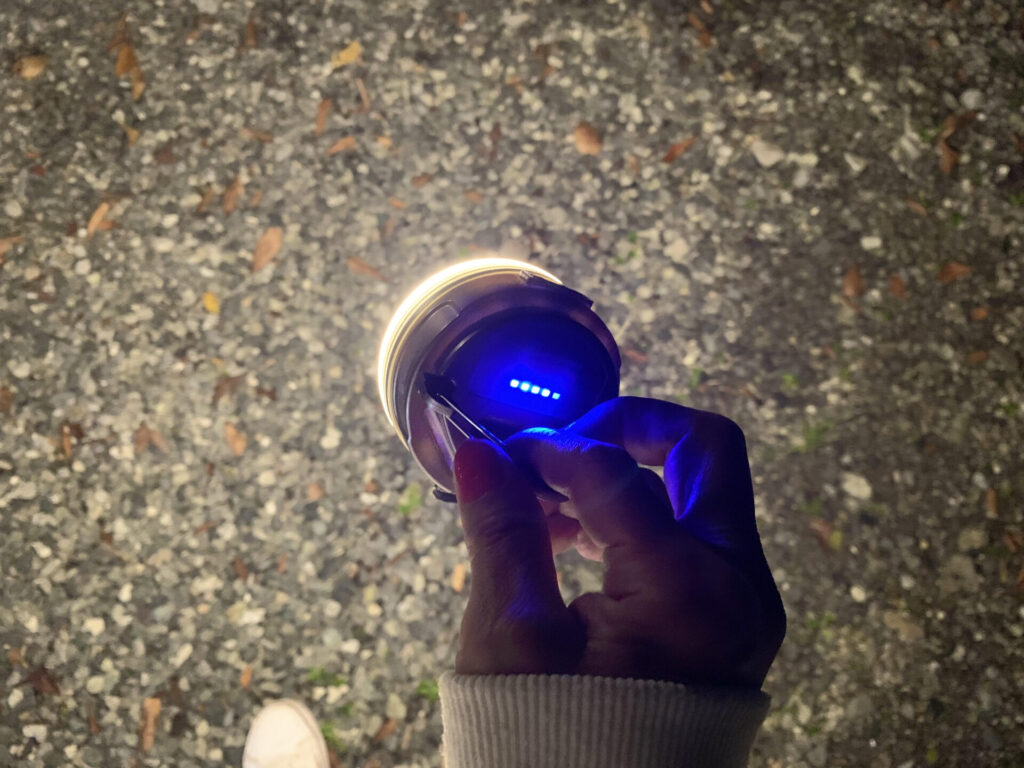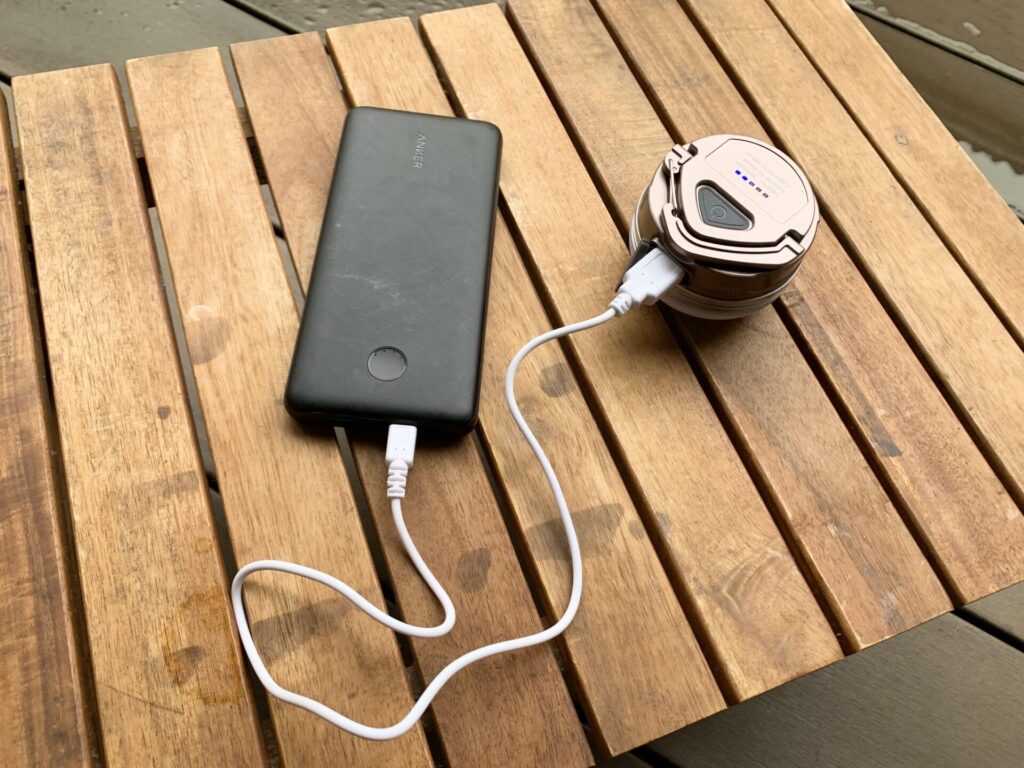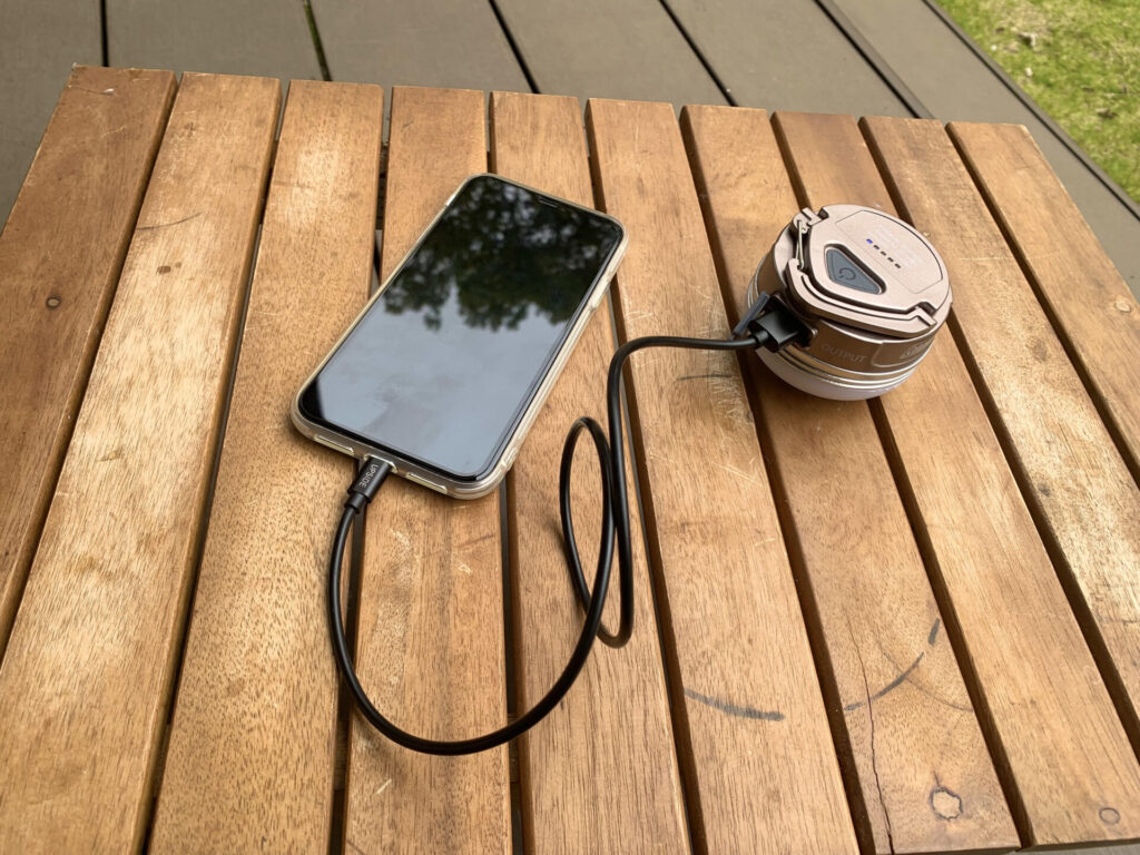 実際に、「ハンギングEライト」をフル充電した状態で一晩使った後にスマホを充電してみましたが、まだ充電は残っていました!
