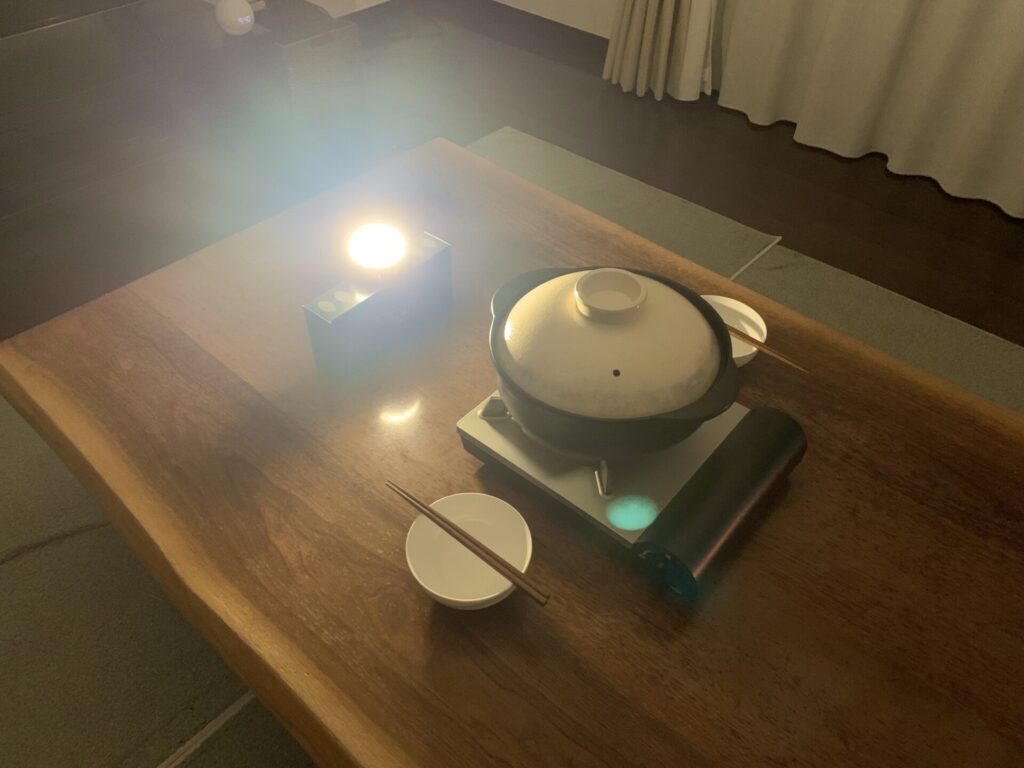 ランタンで空間全体を照らしていても、調理時はスポット的に照らさないと見づらいんですよね。