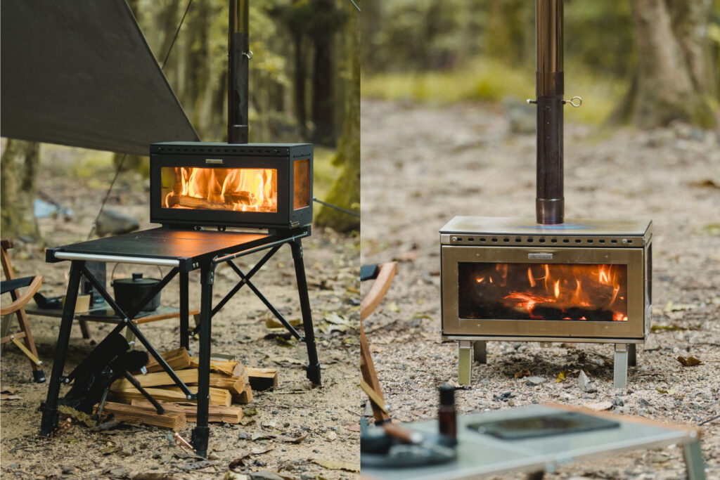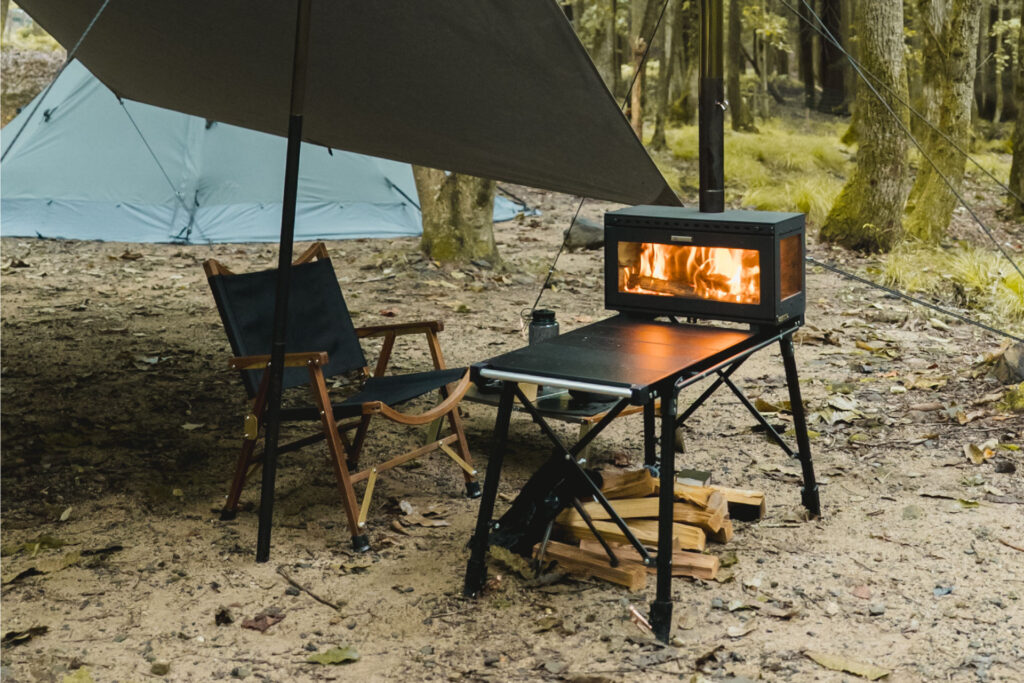 また、今秋発売予定の『ヴァーサテーブル』に設置すれば、テーブルの高さ(45cm)で薪ストーブを眺めながら楽しむ、新しいキャンプスタイルが提案されています。