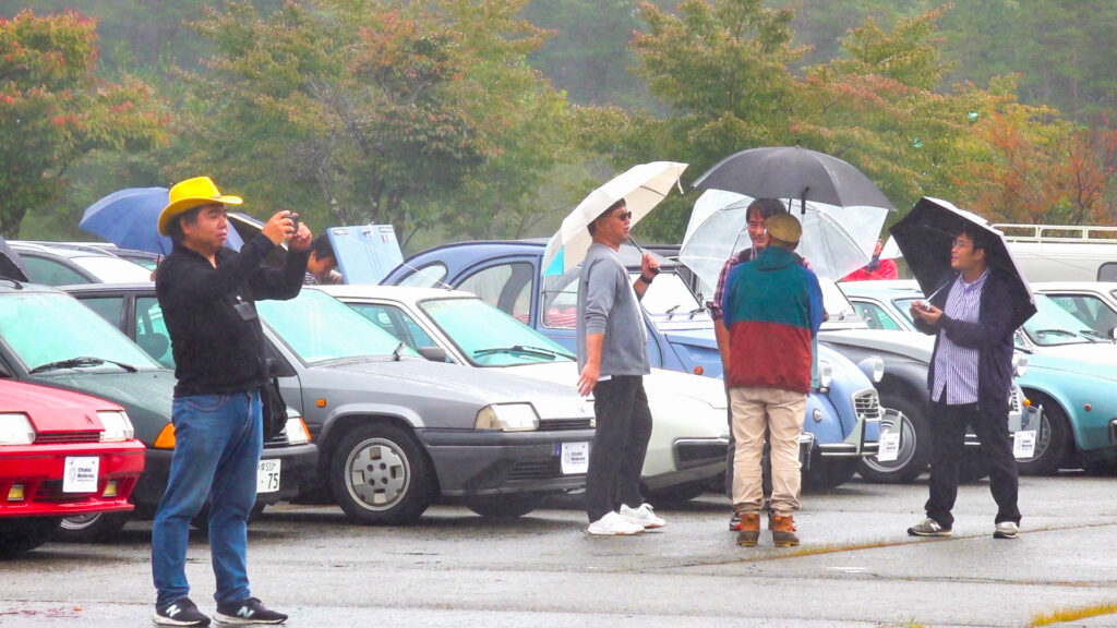 車両が並ぶ駐車場一帯は「シトロエンコミュニティガレージ」と銘打たれ、オーナー同士が情報交換する場として機能しています。お互いの愛車を紹介し合い、写真を撮ったり意見交換したりするシーンは、「シトロエニスト ランデブー」の定番の光景になりつつあります。