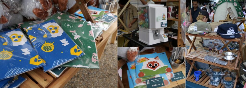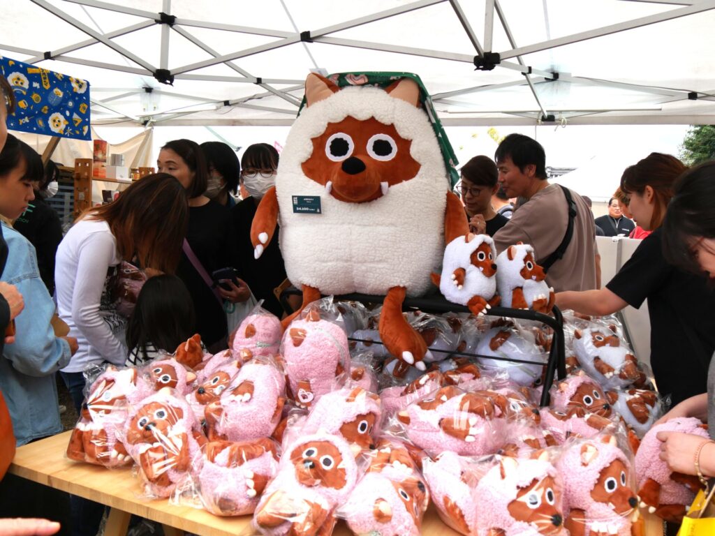 普段はオンラインショップ「ハピキャンストア」で販売されているウルフィのぬいぐるみやハピキャングッズを実際に手に取れる貴重な機会とあって、ウルフィのぬいぐるみやハピキャングッズの前には人だかりができていました。