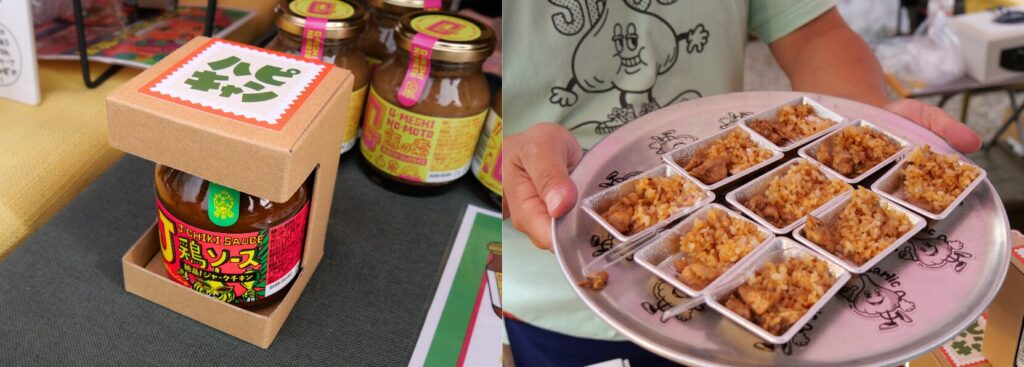 「J鶏ソース」はハピキャン限定コラボパッケージに加え、ジャマイカンウルフィのコラボステッカー付きという特別仕様。味わいとレア感の両方が来場者の心をつかんでいました。