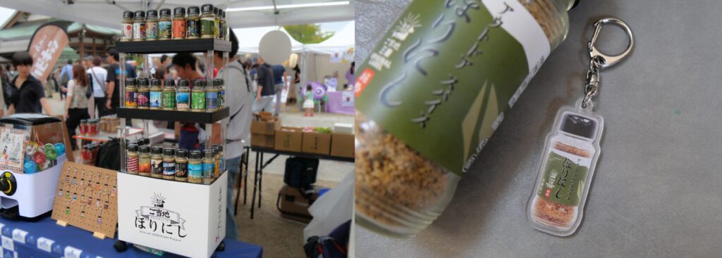 アウトドアスパイスの定番「ほりにし」から、地域限定パッケージが並ぶご当地ほりにしブースが登場!