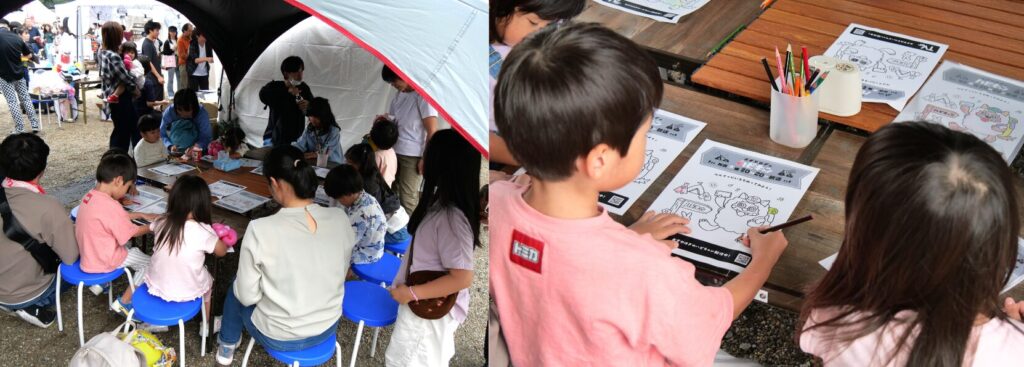 ウルフィ塗り絵ワークショップでは、子どもたちが思い思いに彩りを加え、かわいいウルフィが次々と誕生。見守る大人たちもほっと笑顔になれる癒し空間となっていました。