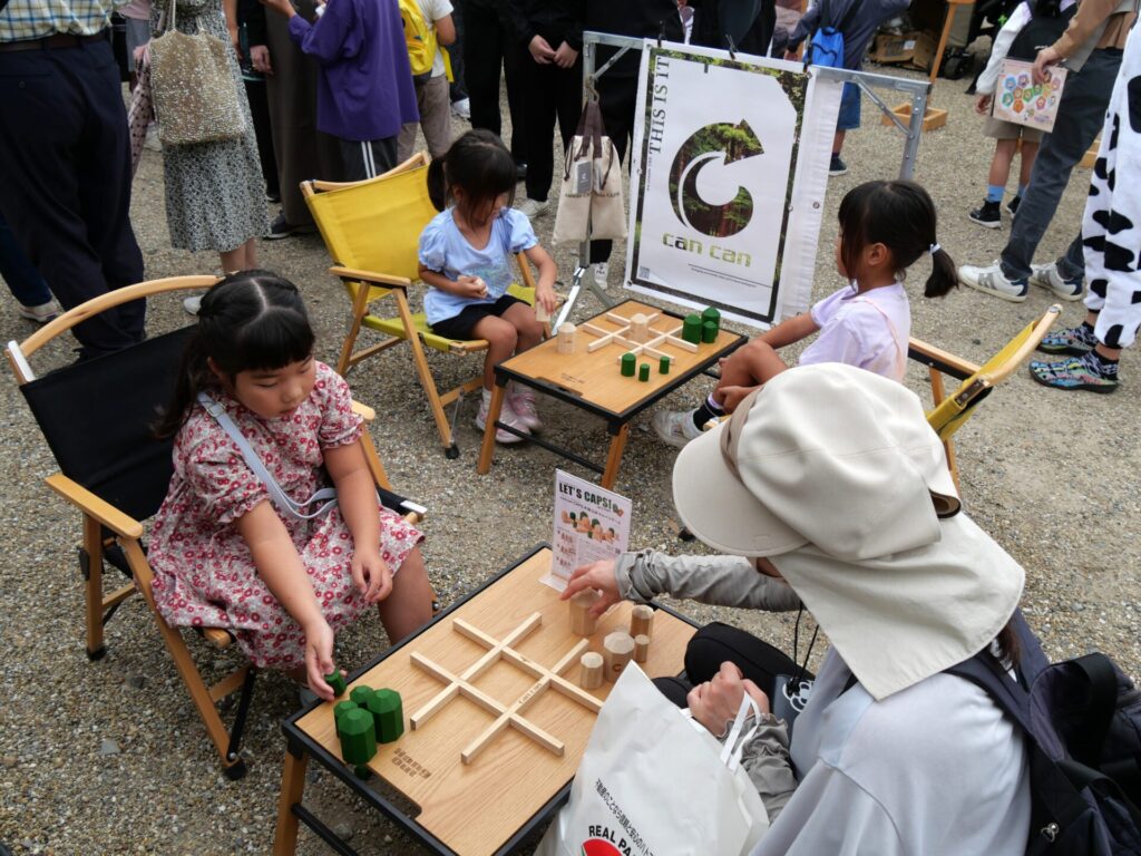 さらに、アウトドアでも気軽に楽しめるボードゲーム「cancanCAPS」体験コーナーも白熱。大人から子どもまで、熱戦が繰り広げられていました。