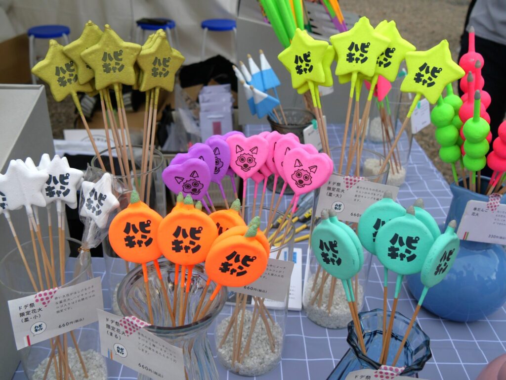 今回初出展の井上玩具煙火では、ウルフィとハピキャンロゴ入りの限定デザイン花火が大人気!カラフルでキュートなデザインに、「かわいすぎて思わず買っちゃいました!」という声も。