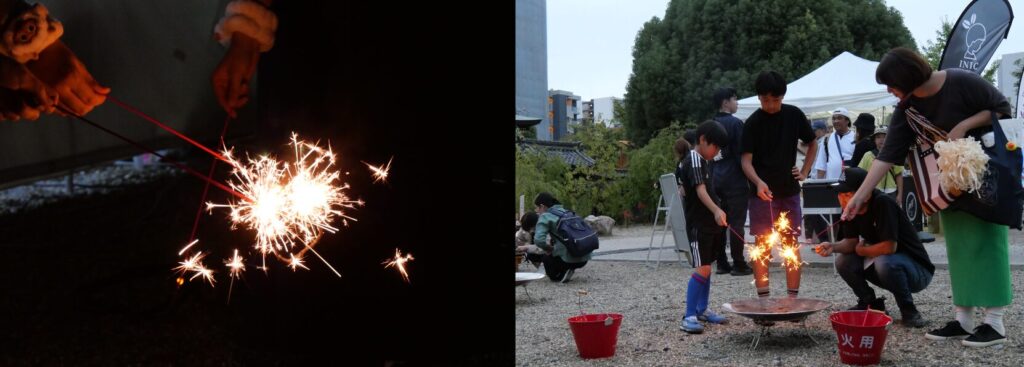 まず盛り上がりを見せたのは、井上玩具煙火による手持ち花火体験。
