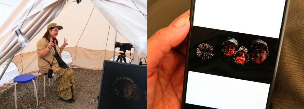 イベントのフィナーレ!「ハピキャン写真館」の笑顔が夜空に打ち上がる