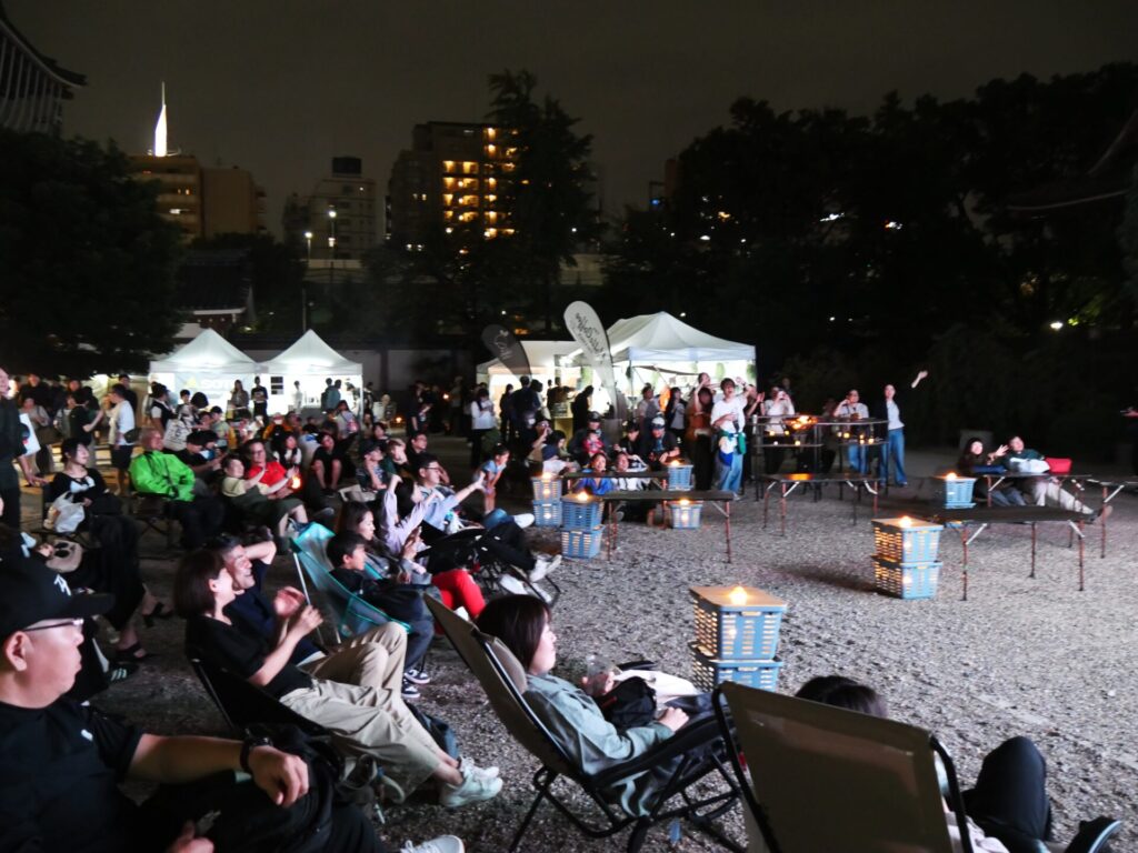 日が暮れると会場の雰囲気は一変。灯りと音楽が溶け合い、昼間とはまったく違う幻想的なムードが広がりました。