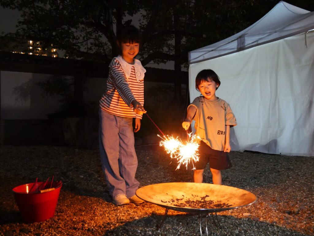 限定花火の購入者特典として参加でき、ファミリーやグループ、カップルなどが次々と集まりました。夕暮れの空にパチパチと火花が弾け、お祭り気分を楽しむ来場者の笑顔が印象的でした。