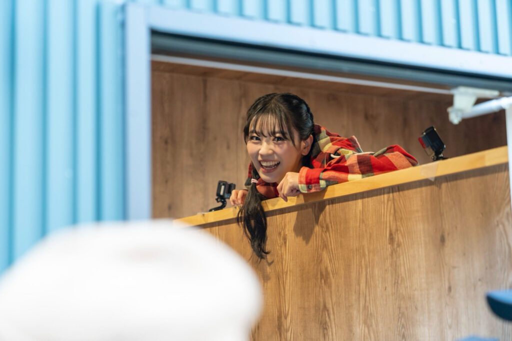トイレやシャワーも完備された快適なトレーラーハウス。坂井さんは2段ベッドの上からファンサービスを披露し、場が一気に和みました。