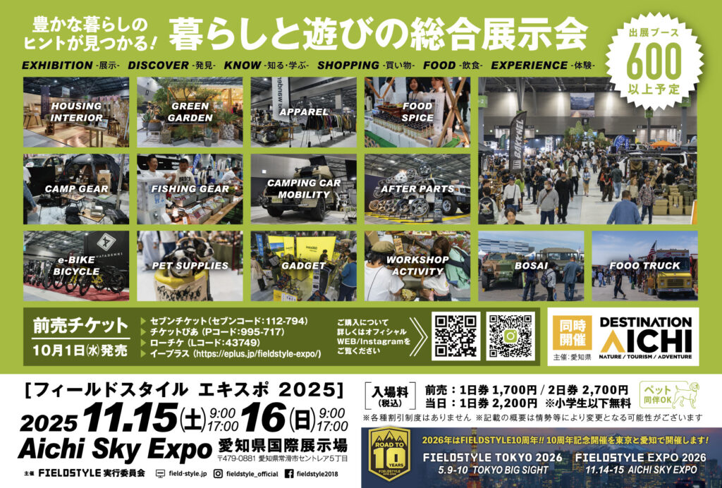 ・イープラス https://eplus.jp/fieldstyle-expo/ ※1日券のみ取り扱い